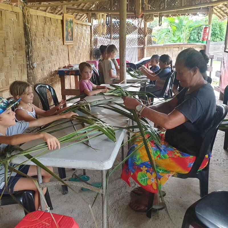 Initiation - Confection du More (écorce du Purau) - Peindre son pareo - apprendre à attacher son pareo - Tressage (palme de cocotier) éventail - Confection de sa couronne de fleurs - Confection de ras de cou/bracelet/chevillière coquillage - Confection de mono'i - Activité culinaire
